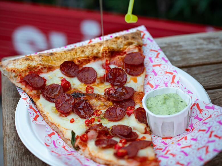 Open for takeaway. New York meets Naples at Slice – where Pizza Pilgrims brings us pizza by the metreGiraffe, Southbank Centre credit Victor Frankowski Giraffe